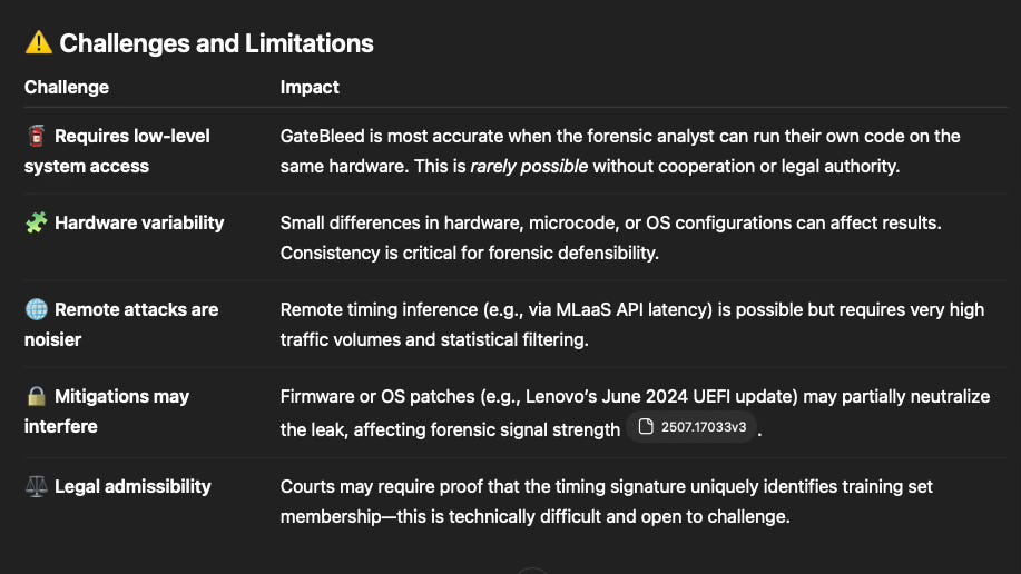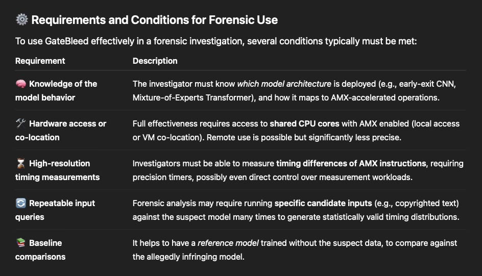 Using GateBleed as a forensic tool to detect unauthorized training data use or AI model misbehavior is possible, but not straightforward. It depends on the context, the access level of the auditor or investigator, and the resources available. Here’s a detailed breakdown of the feasibility, challenges, and potential practical workflows for forensic use: