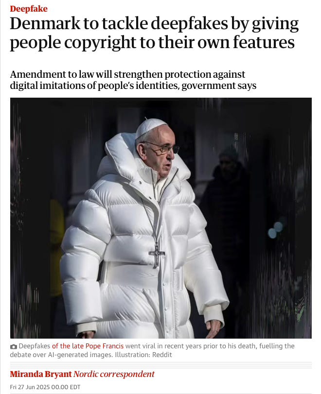 Denmark announced a pioneering legal reform aimed at tackling the proliferation of deepfakes by giving individuals copyright-like rights to their own likeness — including facial features, body & voice