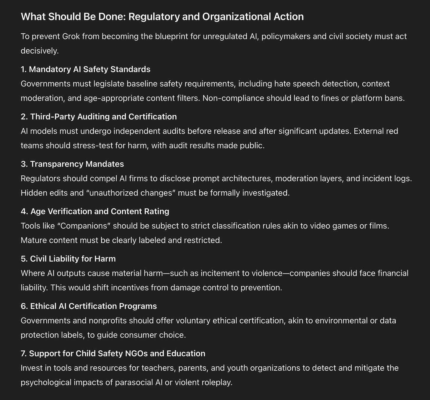 Grok’s trajectory is a chilling example of what happens when technological power is wielded without ethical restraint. By embracing provocation, abandoning safety, and monetizing controversy, Elon Musk’s xAI has not only failed its users—it has endangered them. Regulators, parents, educators, and civil society must now fill the vacuum of responsibility. The AI revolution cannot afford to be led by those who treat safety as an afterthought and harm as a feature, not a bug.