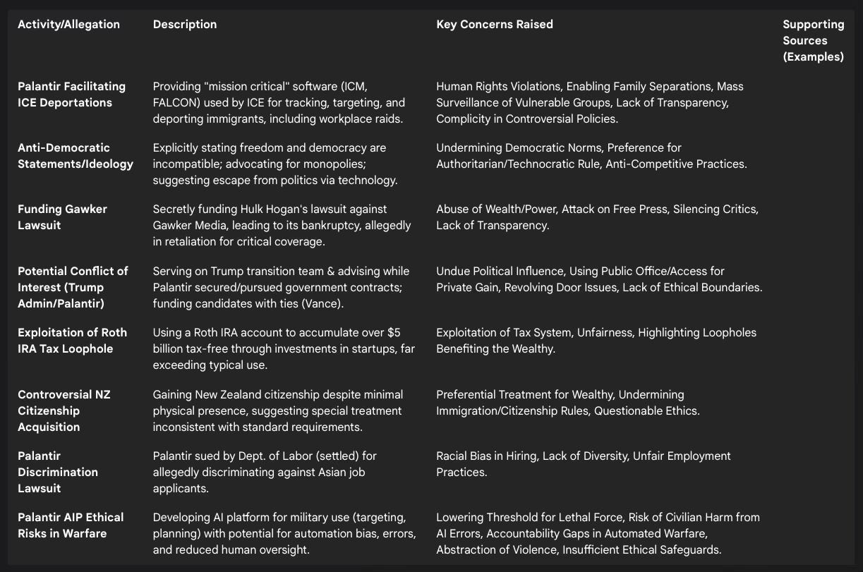 accessed April 17, 2025, https://gizmodo.com/peter-thiels-spy-company-gets-into-bed-with-ice-as-trump-says-hell-deport-u-s-citizens-2000590772