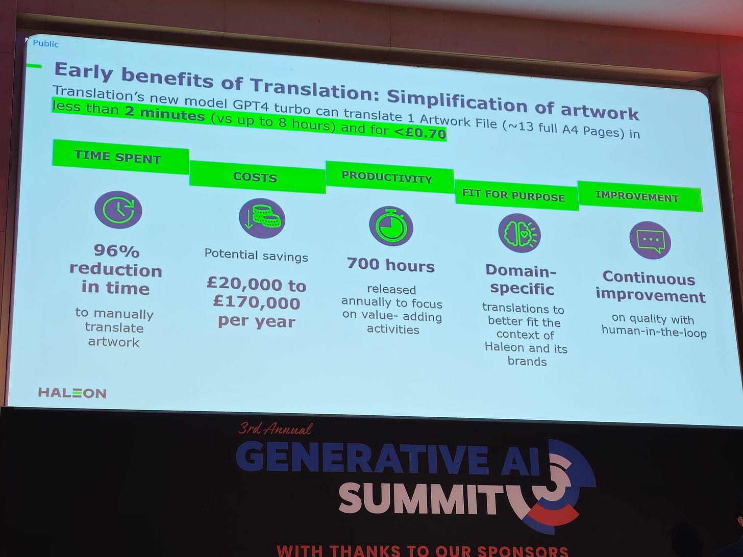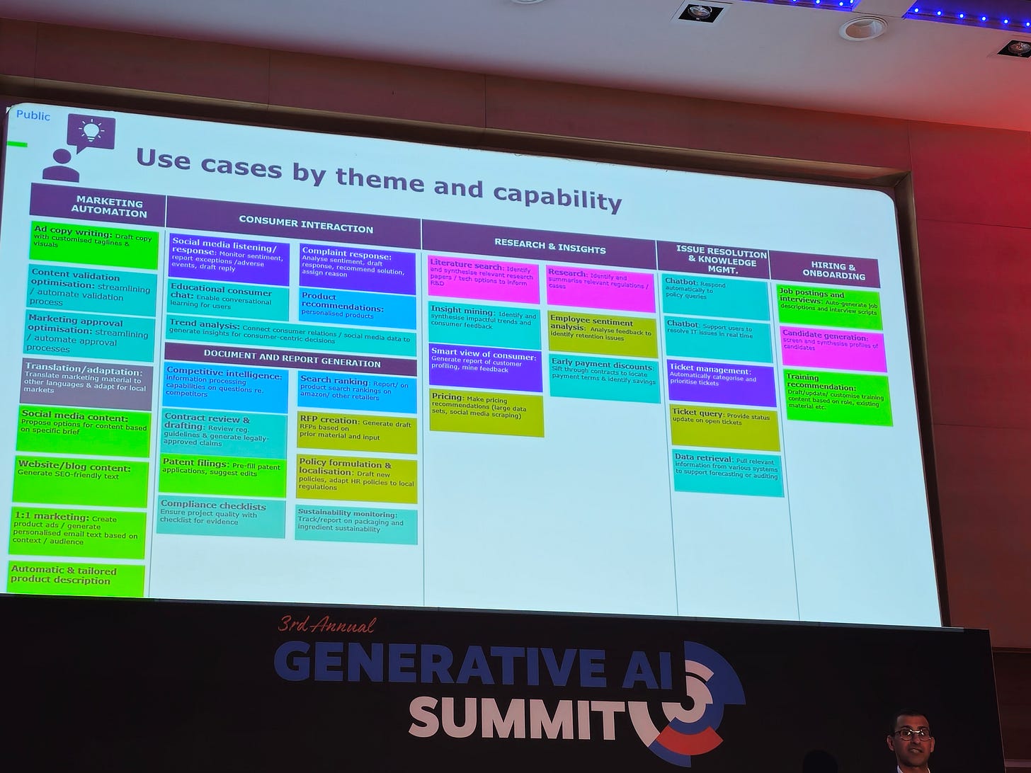 Several speakers emphasized grouping GenAI efforts around cross-functional capabilities (e.g. translation, legal automation, content generation, data retrieval) rather than chasing scattered use cases.