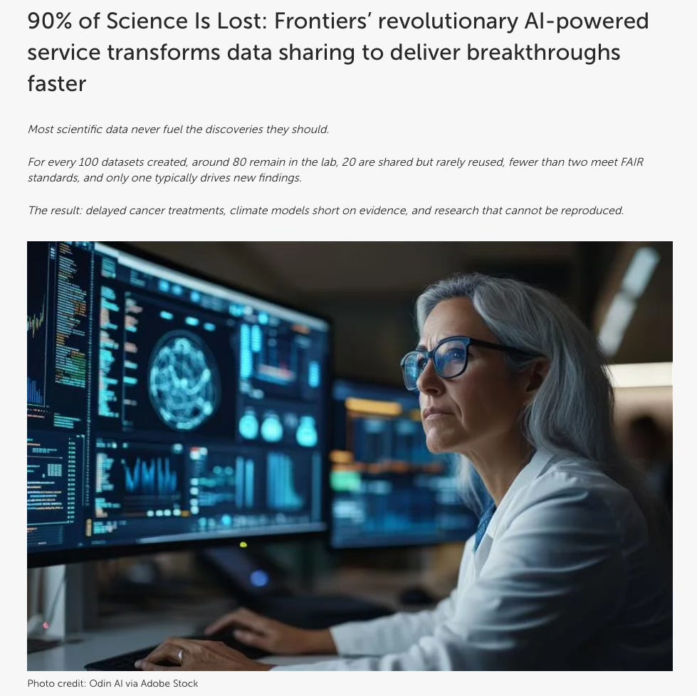 90% of Science Is Lost: Frontiers’ revolutionary AI-powered service transforms data sharing to deliver breakthroughs faster, accessed October 24, 2025.