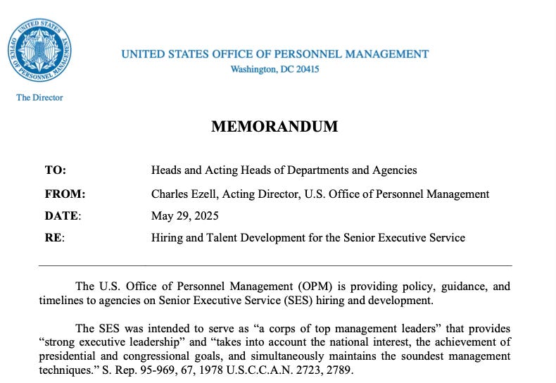 👉 SES officials are supposed to be non-partisan career executives. Conditioning their selection or advancement on political loyalty may be unconstitutional and undermine civil service protections.