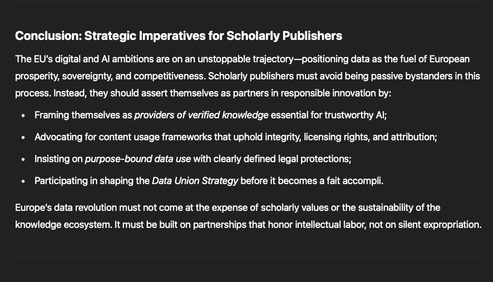 Europe’s data revolution must not come at the expense of scholarly values or the sustainability of the knowledge ecosystem. It must be built on partnerships that honor intellectual labor, not on silent expropriation.