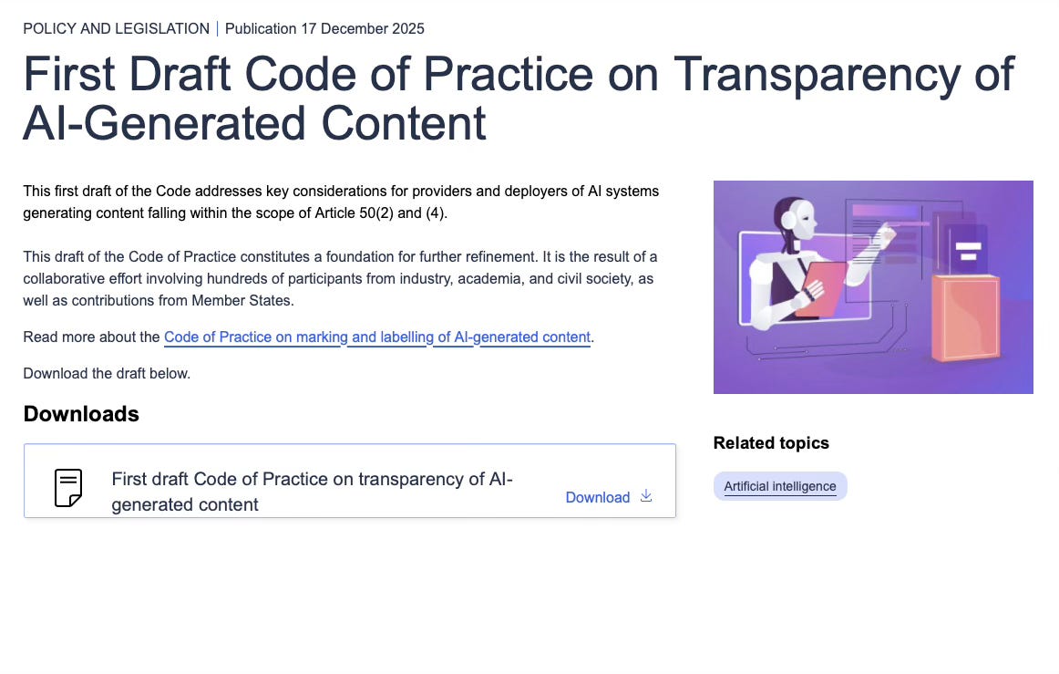 The First Draft Code of Practice on Transparency of AI-Generated Content is an important and necessary step toward governing AI not merely as a technology, but as a knowledge-shaping force.