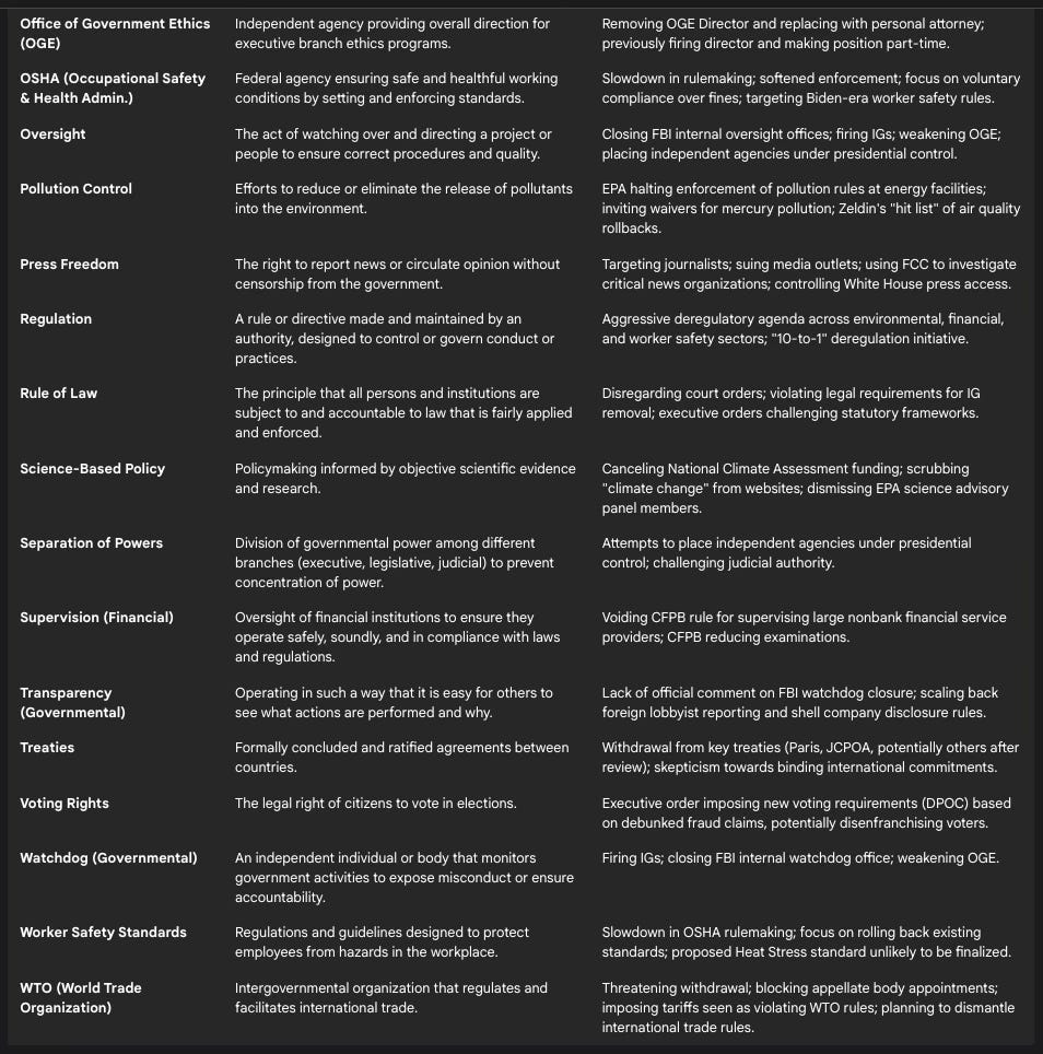 This report systematically examines terms and concepts that the administration appears to treat as obstacles or undesirable constraints—what can be termed its "dirty words." These include "audits," "compliance," "integrity," "oversight," "regulation," "international cooperation," "ethics," "rule of law," and "transparency." By analyzing specific administrative actions, policy shifts, and rhetoric documented in various accounts, this report aims to build a comprehensive picture of this aversion. The objective is to identify these "dirty words" and illustrate, through evidence, how the administration's approach seeks to redefine, diminish, or bypass them, and to explore the broader implications of such a governance philosophy.